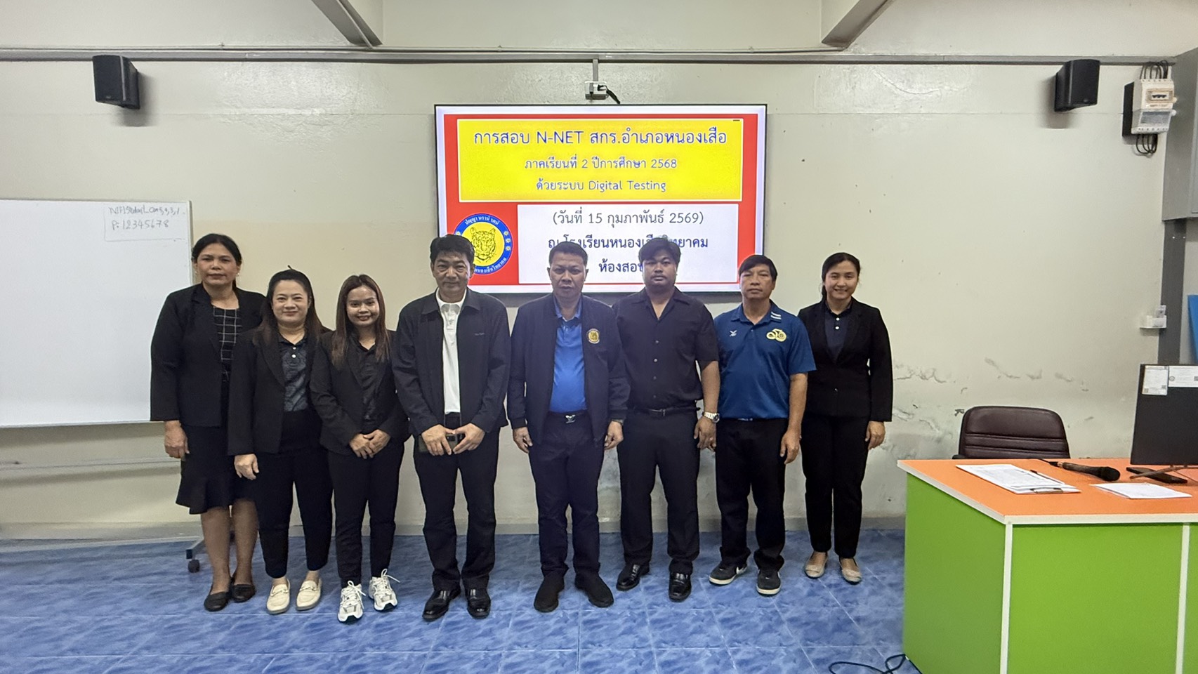 วันที่ 15 กุมภาพันธ์ พ.ศ.2569 นางรัชนุช สละโวหาร ผอ.สนง.สกร.ประจำจังหวัดปทุมธานี มอบหมายให้ นางสาวศิวิลัย ดวงเงิน นักวิชาการศึกษา นางสาวมนทิยา รื่นสุข นักทรัพยากรบุคคล และนางสาวนพรัตน์ อินทนิล เจ้าพนักงานธุรการลงพื้นที่นิเทศผลการทดสอบทางการศึกษาระดับชาติด้านการศึกษานอกระบบโรงเรียน (N-NET) ครั้งที่ 2 ปีการศึกษา 2568 แบบ Digilal Testing ระดับมัธยมศึกษาตอนปลาย สกร.ระดับอำเภอหนองเสือ สนามสอบโรงเรียนหนองเสือวิทยาคม