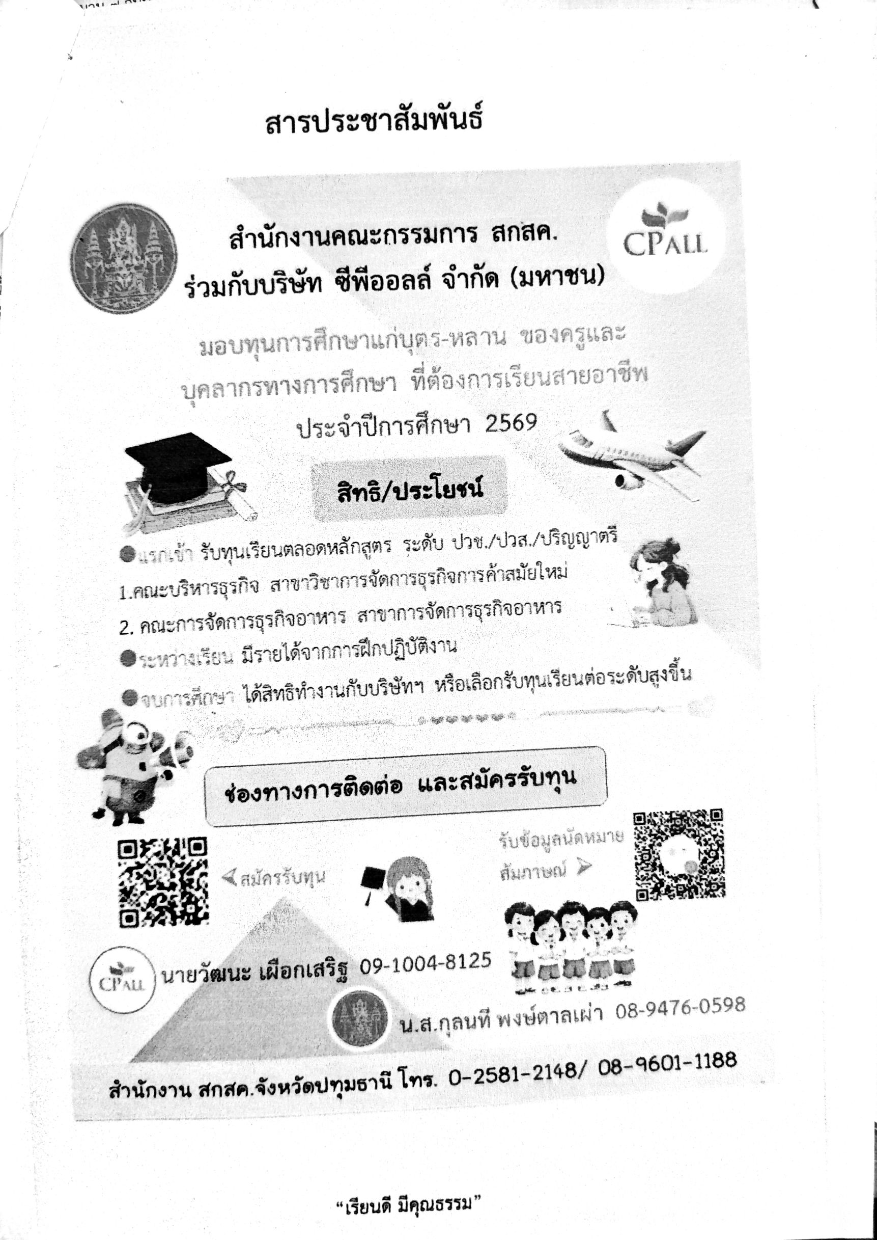ประชาสัมพันธ์การสนับสนุนทุนการศึกษาให้บุตรหลานของครูฯ ประจำปี 2569 (ครั้งที่ 2)